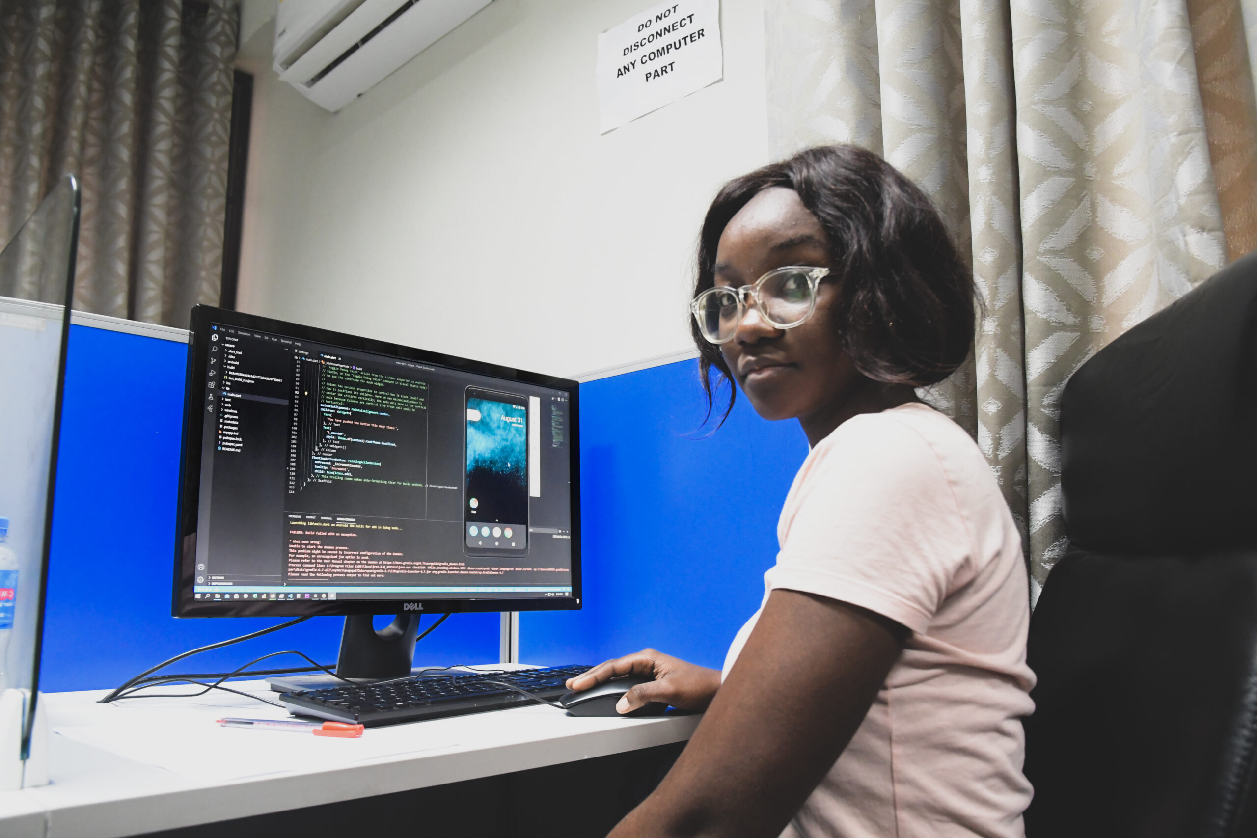 En kvinde i Lagos i Nigeria, Afrikas største by, udvikler en app til sundhedssektoren. Foto: UNESCO-UNEVOC/CCBY