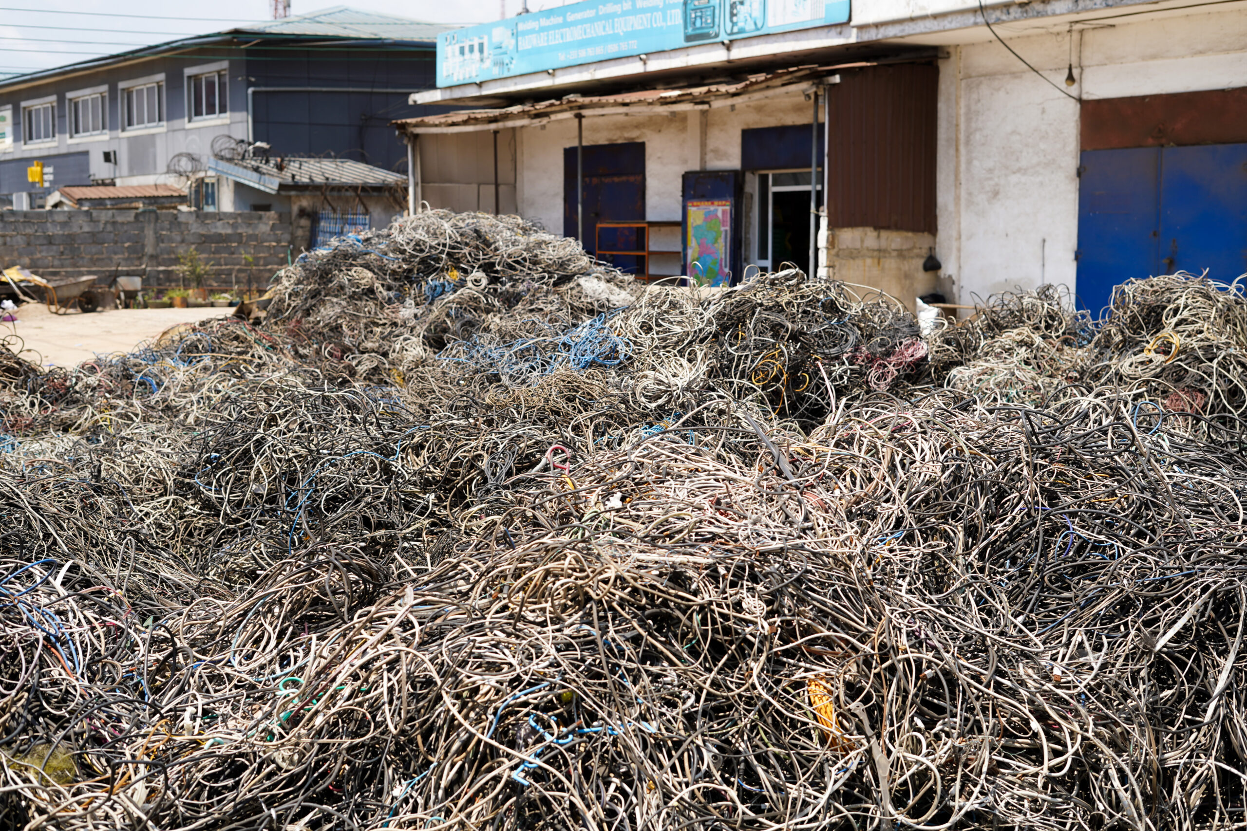Opsamlingscentret på Agbogbloshie opkøber kabler fra alverdens elektronik fra områdets skrotsamlere. Foto: Karoline Rahbek