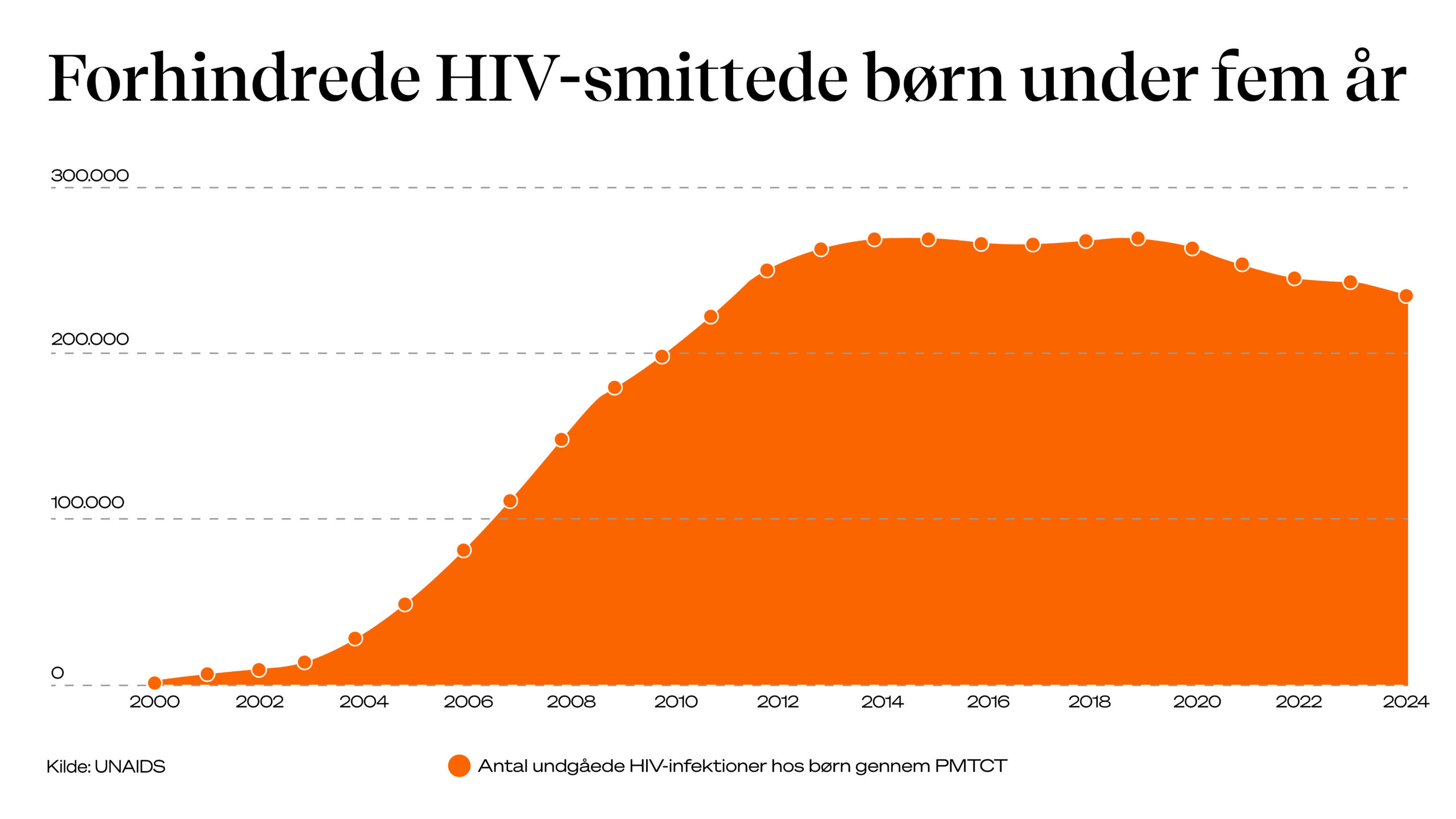 Der er tydeligvis sket meget siden, at der i år 2000 globalt blev født over en halv million børn med hiv. I dag er det tal omkring 120.000 – et fald på hele 78 procent. De sidste 25 år er der altså kommet markant færre børn til verden med virussen.