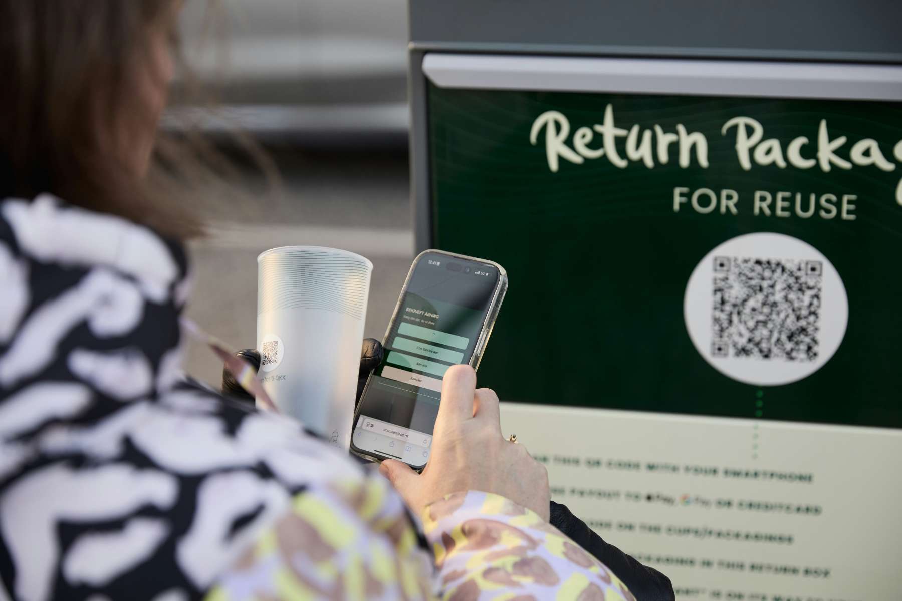 Så når man står på en af de ti caféer, der allerede har New Loop kopperne, og bestiller en cortado eller en latte næste gang, så kan man altså vælge at betale fem kroner i pant. Når kaffen er drukket, scanner man QR-koden på koppen, finder den nærmeste returboks, smider koppen i og får de fem kroner direkte tilbage på kreditkortet eller mobilen.