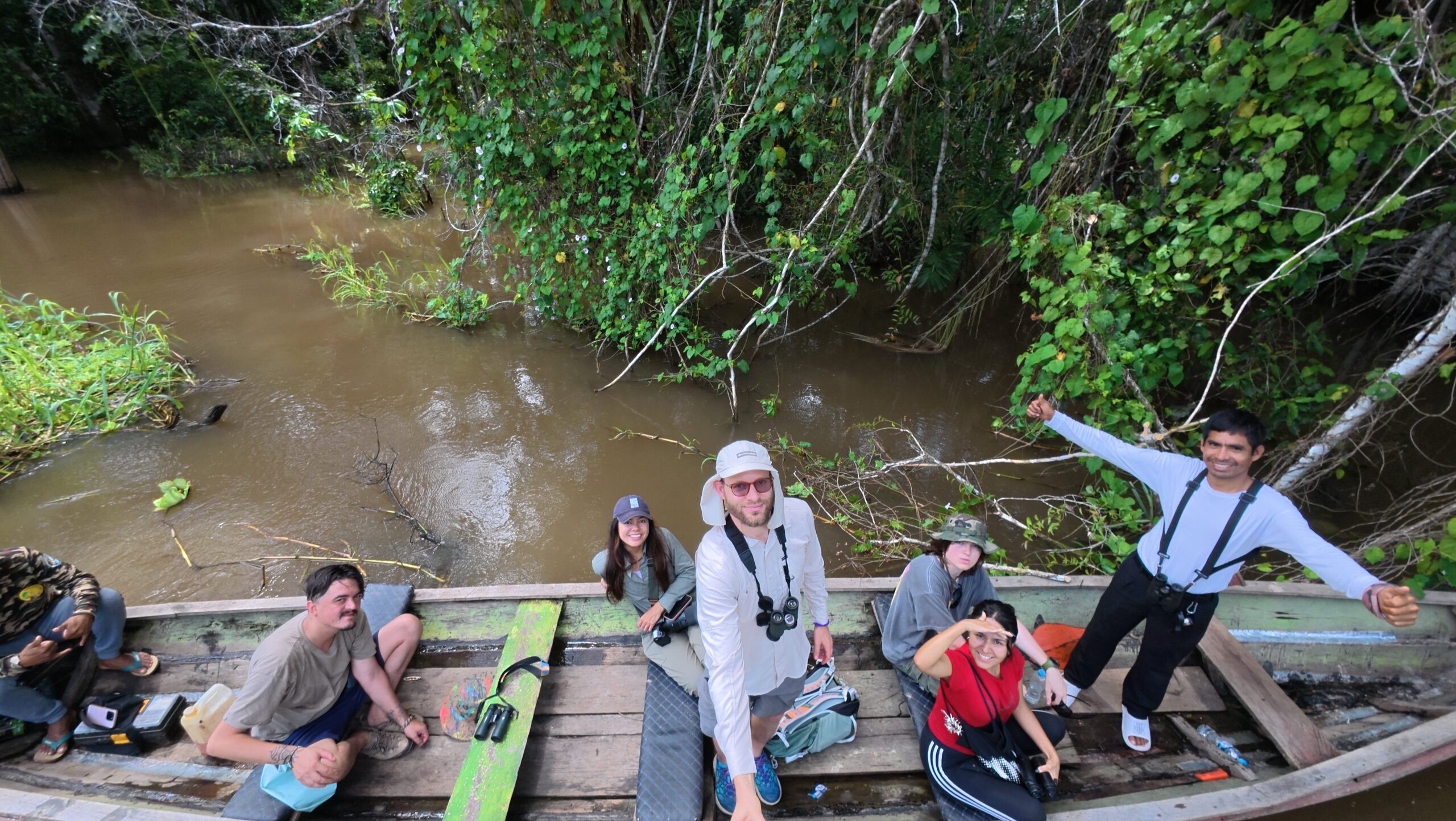 Komponist Mathias Madsen Munch (mf) udforsker regnskoven i Amazonas i Peru sammen med med kunstnere fra hele verden. Sammen med kunstnere fra Kukama Kukamiriafolket, herunder Danna Gaviota og Pablo Eli Taricuarima Piñedo, har udvekslingen ført til Amazonica med støtte fra CISU’s Open-pulje og Statens Kunstfond.