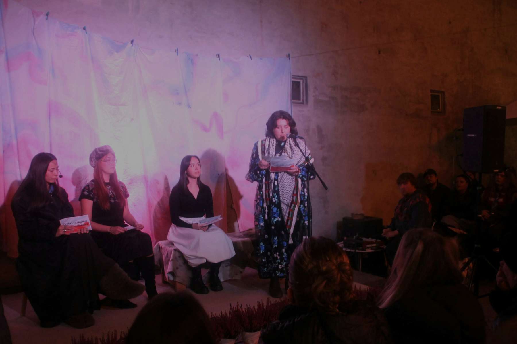 I Det Grønlandske Hus’ baggård i København er stemningen varm, sitrende og fuld af forventninger, selvom det er en kølig oktoberaften. Der er dækket op til kaffemik med alt, hvad der hører sig til af kaffe, kage, te og tørfisk, og under lyskæder og bånd i røde, blå og hvide farver, samles publikum på bænke rundt om den lille scene.